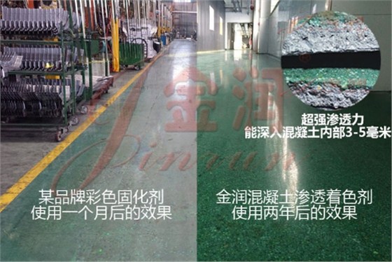 同時金潤新材料有限公司還自主研發(fā)出了滲透型混凝土著色劑,金潤混凝土著色劑為滲透性納米級高分子材料,能夠深入滲透混凝土內(nèi)部3-5毫米,絕非浮于表面,永不褪色,歷久彌新。配合金潤混凝土硬化劑使用,地面表面會形成一層玻璃質(zhì)感,堅固耐磨。由此打造出的彩色鋼化地坪可以保證叉車行走30年不起塵,安全環(huán)保,堅固耐久!同時具有豐富的顏色可供選擇,美觀亮麗!金潤混凝土彩色鋼化地坪必將成為中國地坪的新常態(tài)!
