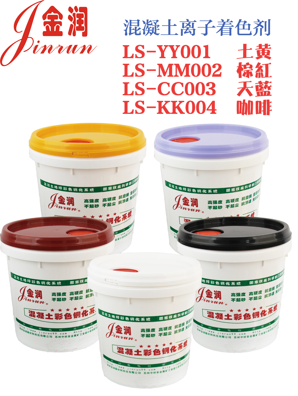 混凝土離子著色劑為高科技納米材料,與混凝土物質(zhì)發(fā)生離子交換反應(yīng),生成無機的顯色物質(zhì),形成性質(zhì)穩(wěn)定的彩色混凝土整體結(jié)構(gòu),耐水耐曬,抗老化,不退色,色調(diào)穩(wěn)定,色彩自然,還可利用現(xiàn)有的色彩品種自行調(diào)配出所要求的其他顏色。